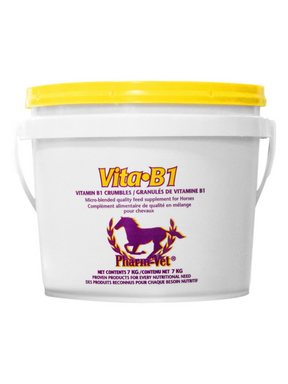 Vitamin B1 granules for horses contain 17,600 mg of vitamin B1 (thiamine) per kilogram.