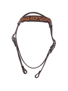 Le motif floral minutieusement sculpté à la main, associé à la finition vintage brun foncé, crée un style authentique et intemporel. Sa conception à frontal assure un bon maintien et une stabilité idéale, parfaits pour le travail ou la compétition. Dotée de boucles en acier inoxydable, cette bride résiste aux éléments tout en conservant son élégance.