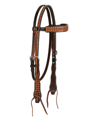 Le Floret Tooled Straight Browband Headstall de la collection Floret Tooled est fabriqué à partir de cuir huilé clair, décoré de motifs floraux sculptés et doté de matériel en acier inoxydable pour garantir des performances durables. Cette tête de licol allie force professionnelle et flexibilité, idéale pour les cavaliers recherchant à la fois fonctionnalité et esthétique. Son design classique avec une tête droite assure un ajustement optimal tout en apportant une touche de raffinement intemporel. Parfait pour l’équitation quotidienne et les compétitions, ce headstall est un choix moderne et résistant.