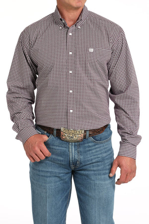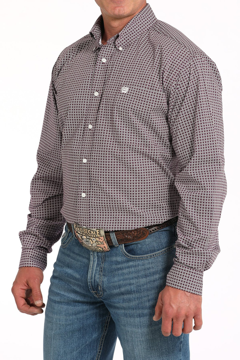 Bougez librement et travaillez avec style grâce à notre élégante chemise unie en coton et élasthanne à imprimé géométrique violet. Cette chemise classique est dotée d'une poche avant gauche ouverte, d'un logo CINCH brodé et de boutons blancs.