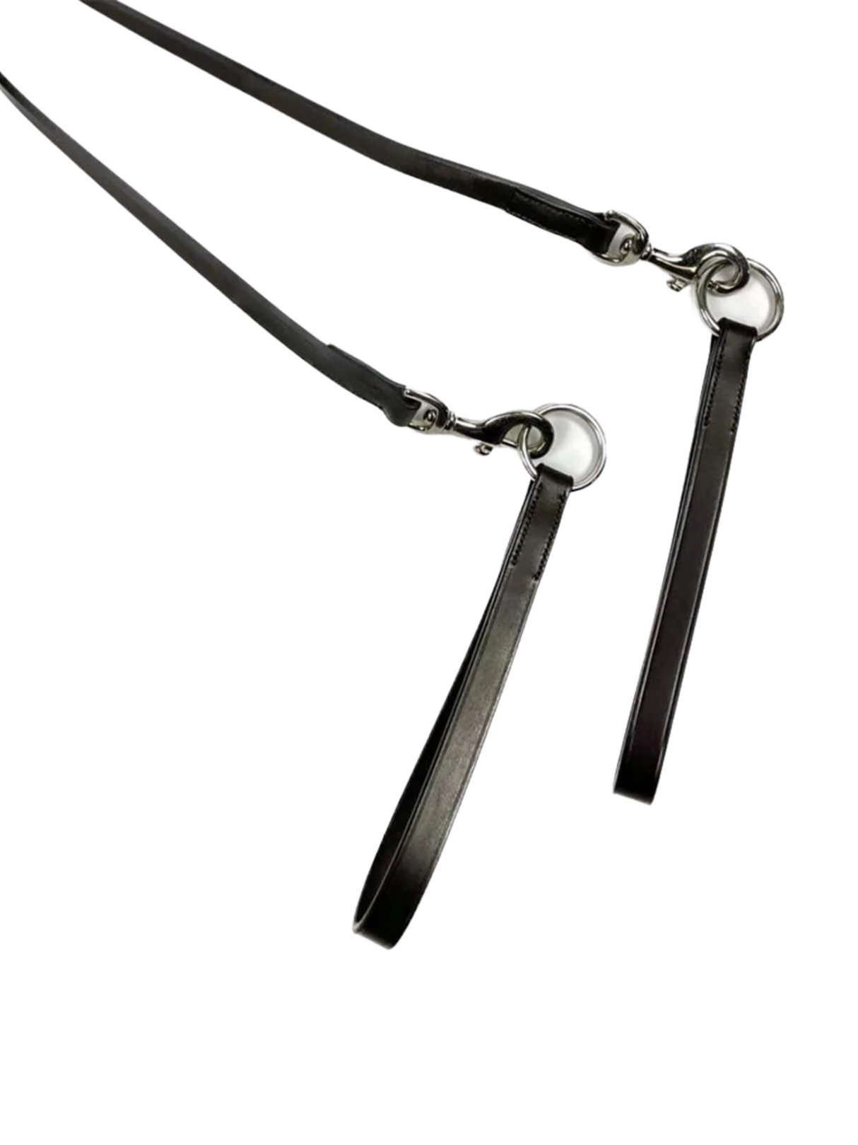 Rênes allemandes en cuir Havana avec attaches pour la sangle.