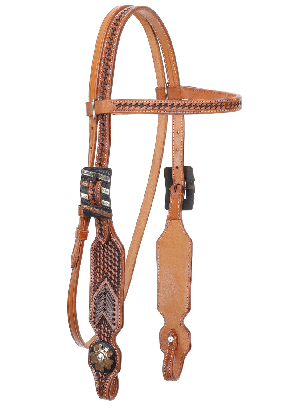 L'ensemble Showman® Stitch & Weave est une pièce magnifiquement conçue qui allie durabilité et style western classique. Confectionné en cuir légèrement huilé, il est conçu pour résister à l'usure quotidienne tout en offrant un look élégant et accrocheur. Le tressage en panier et les coutures en cuir brut ajoutent des détails complexes, soulignant le savoir-faire artisanal de chaque pièce.