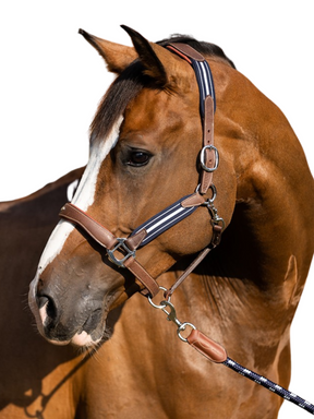 Fabriqué en cuir français de haute qualité, le licol Stressless conjugue confort et durabilité. Il est conçu pour accompagner le cheval de manière sereine et sûre.