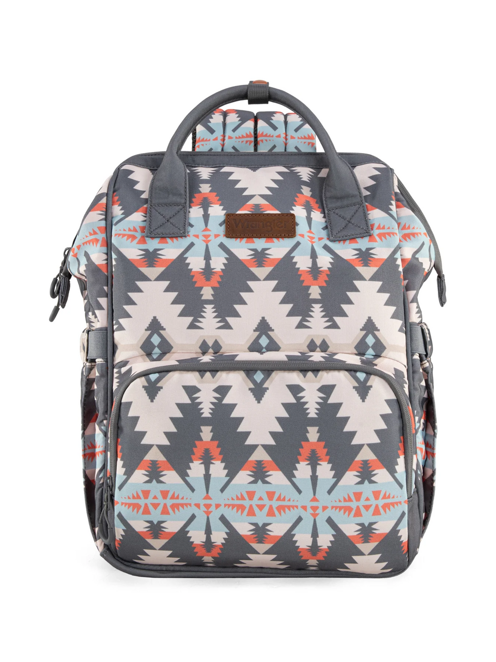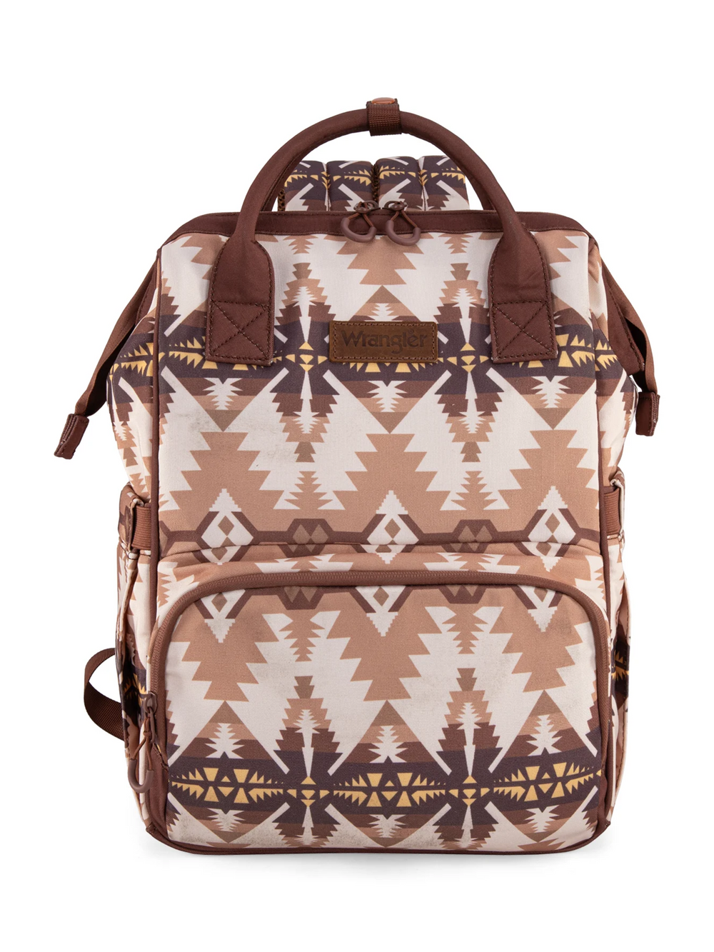 Polyvalent et stylé, le sac à dos Callie de Wrangler allie fonctionnalité et design western. Fabriqué en toile résistante, il arbore un imprimé aztèque distinctif. Son format spacieux offre plusieurs poches pratiques, dont une à l’arrière avec fermeture éclair et une autre à l’avant comprenant trois compartiments ouverts. Il comprend également deux poches ouvertes sur les côtés, un grand compartiment principal avec une poche zippée et deux poches ouvertes, ainsi qu’une poignée sur le dessus. Grâce aux sangles à velcro, il peut être fixé facilement à une poussette ou à une valise à roulettes