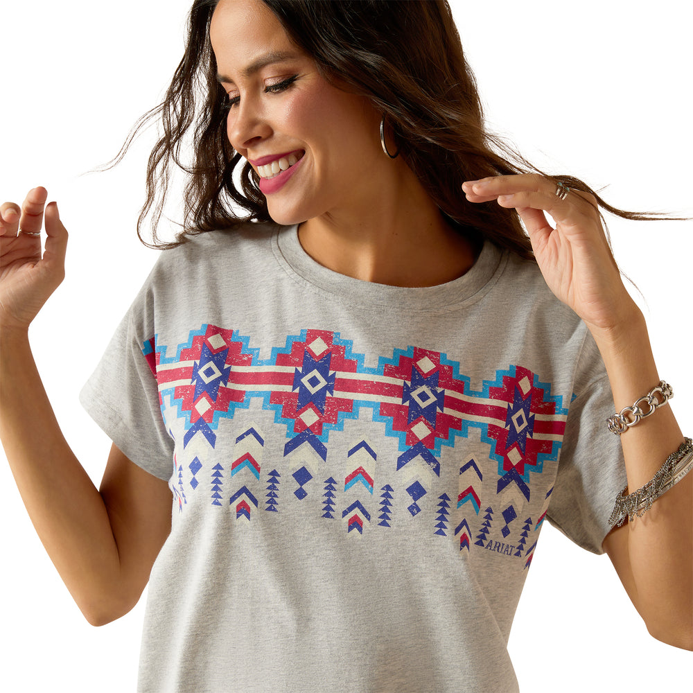 Le T-shirt Birdie d'Ariat est ultra doux avec une coupe ample et carrée, parfaitement raccourcie pour s'associer avec des jeans taille haute. Idéal pour un look décontracté et moderne, ce t-shirt offre un confort maximal grâce à son tissu léger et respirant. Son design inclut un graphique sérigraphié sur un fond gris chiné, ajoutant une touche de style à votre garde-robe quotidienne.