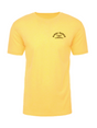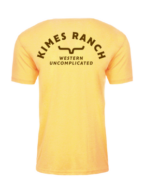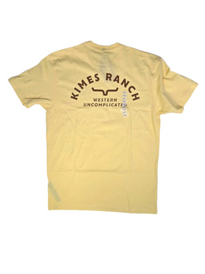 Chandail à manche courte pour homme Cantor de Kimes dans un tissu au mélange de coton et de polyester. Le logo de la compagnie est imprimé à l'avant ainsi qu'à l'arrière du t-shirt en brun, offrant un super contraste contre la couleur Banana Cream du tissu!